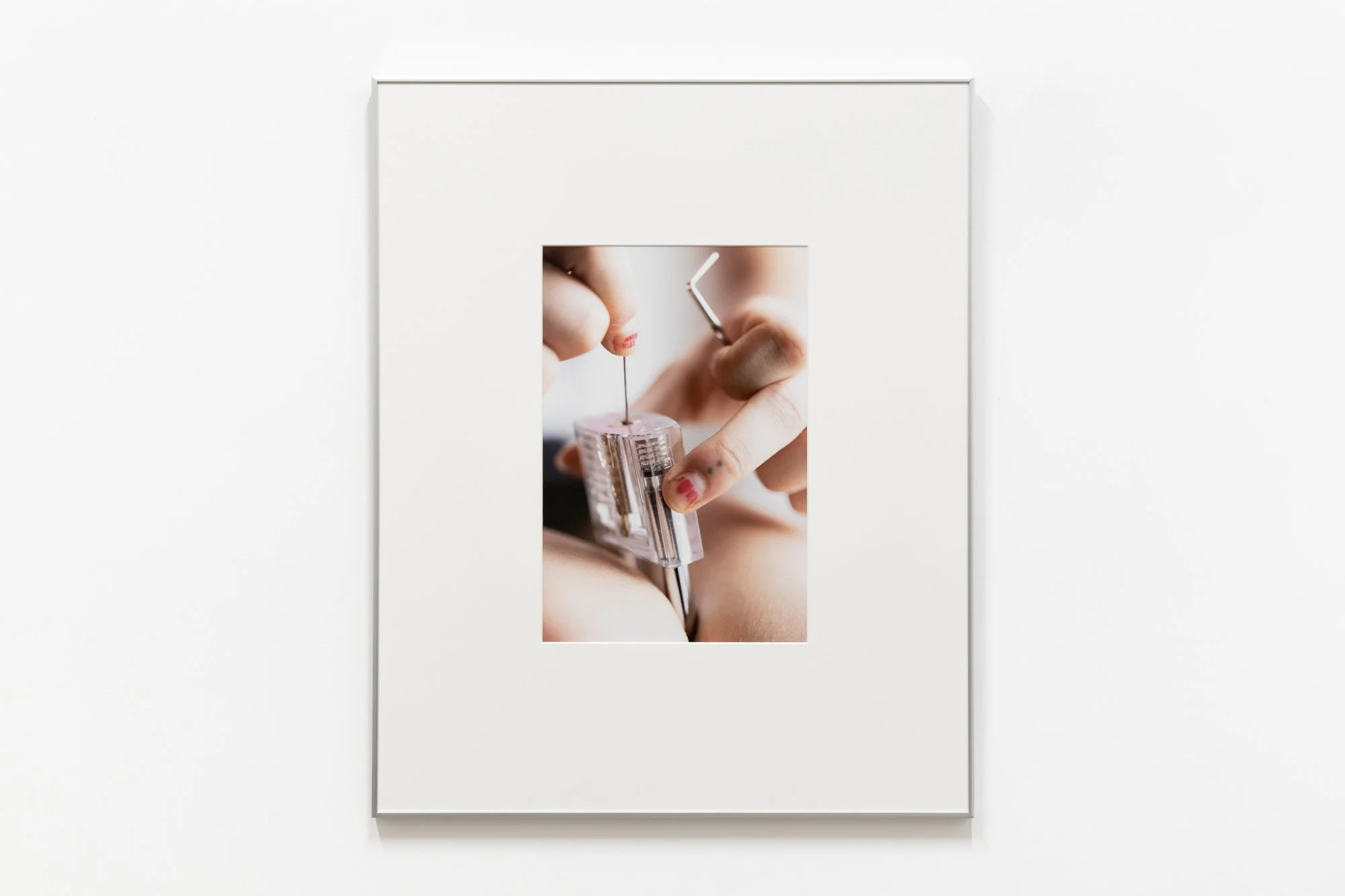 Nicholas Mahady, Lock Picker 01, 2026, archival inkjet print on gloss paper, aluminium framed, 47.5 x 38 cm; 89.1 x 72.2 cm framed