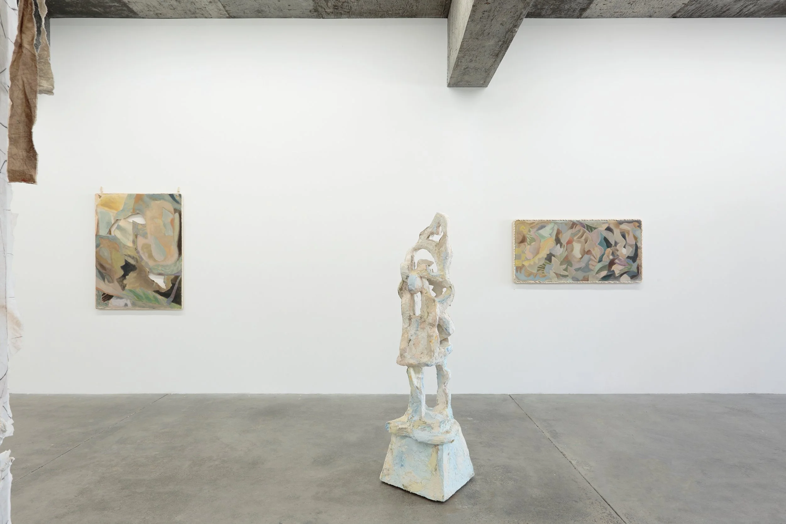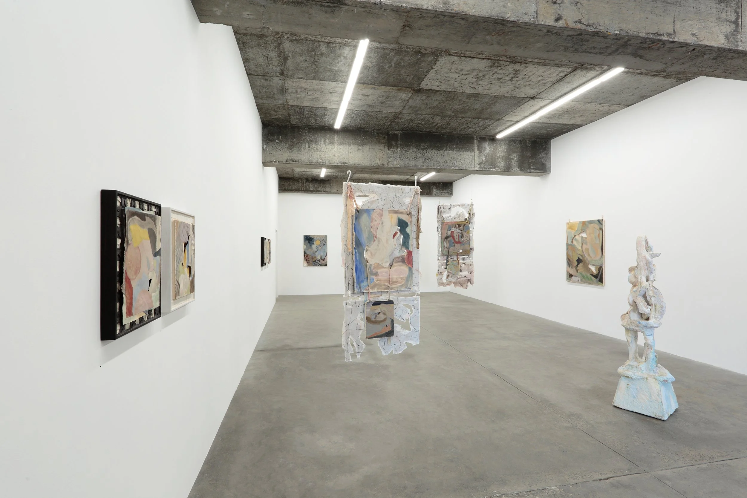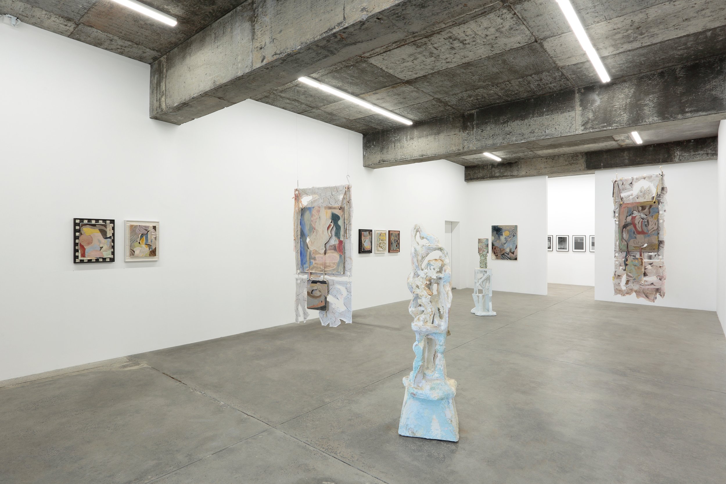 “Surfaces are layered, fractured, recombined; forms gather without settling into a stable order. Paintings slip their frames, objects extend into space, fragments accumulate without resolving into a coherent whole.