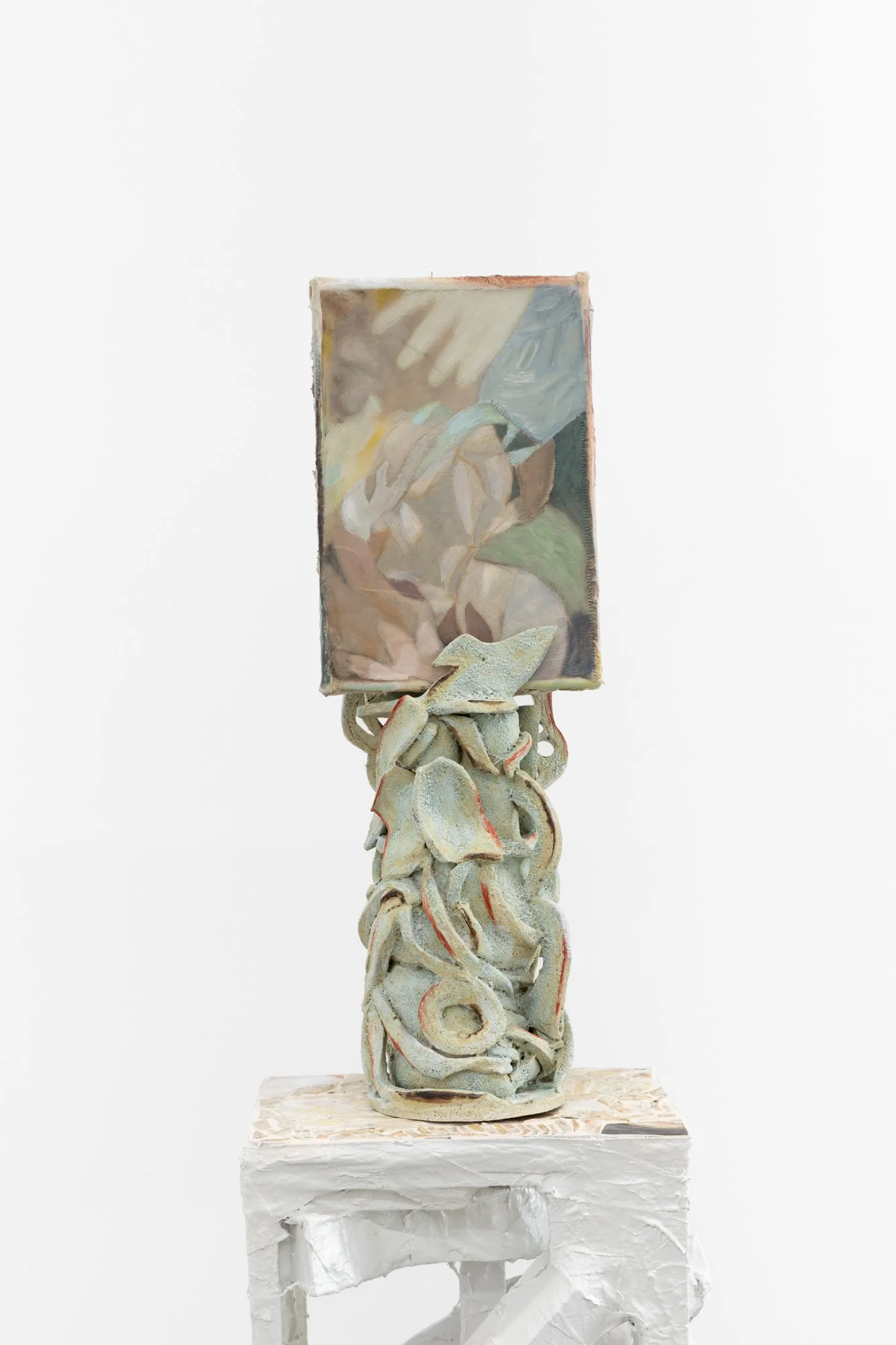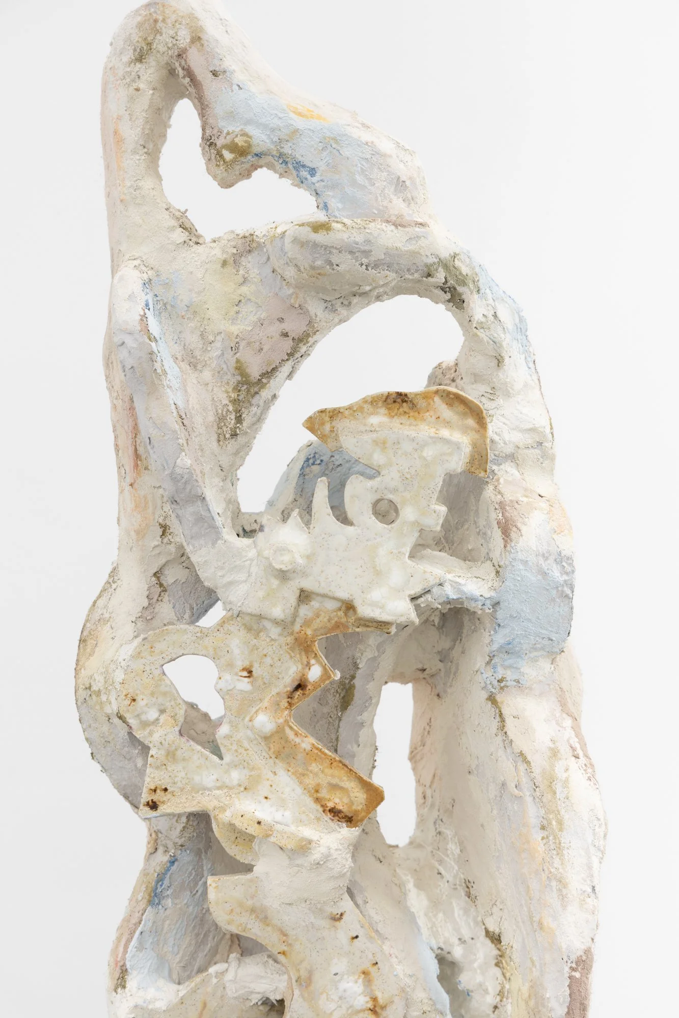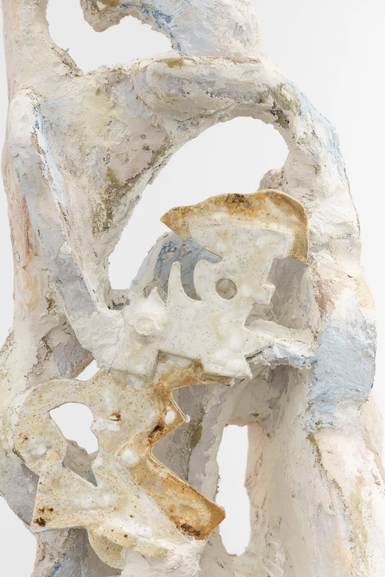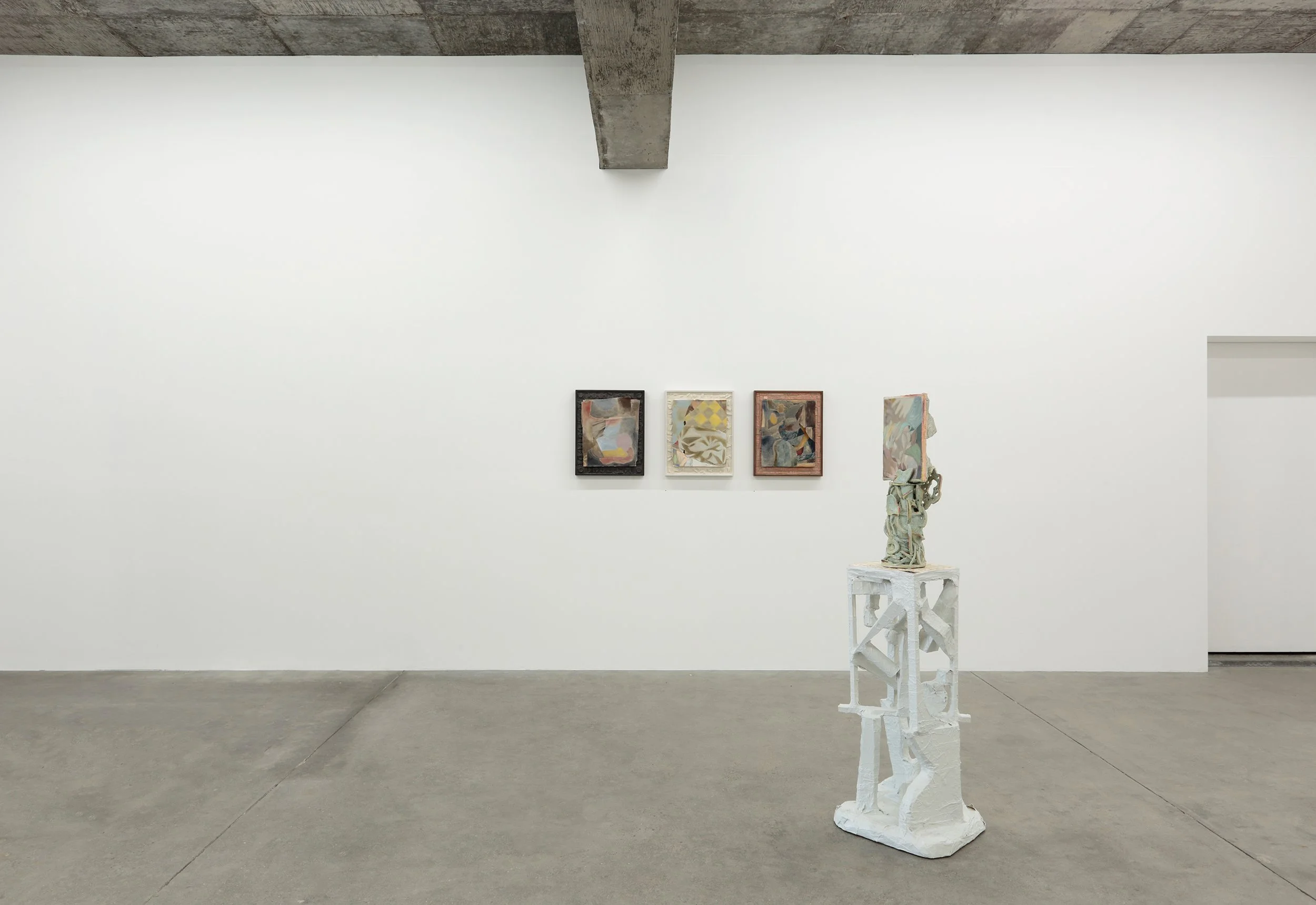 “Surfaces are layered, fractured, recombined; forms gather without settling into a stable order. Paintings slip their frames, objects extend into space, fragments accumulate without resolving into a coherent whole.
