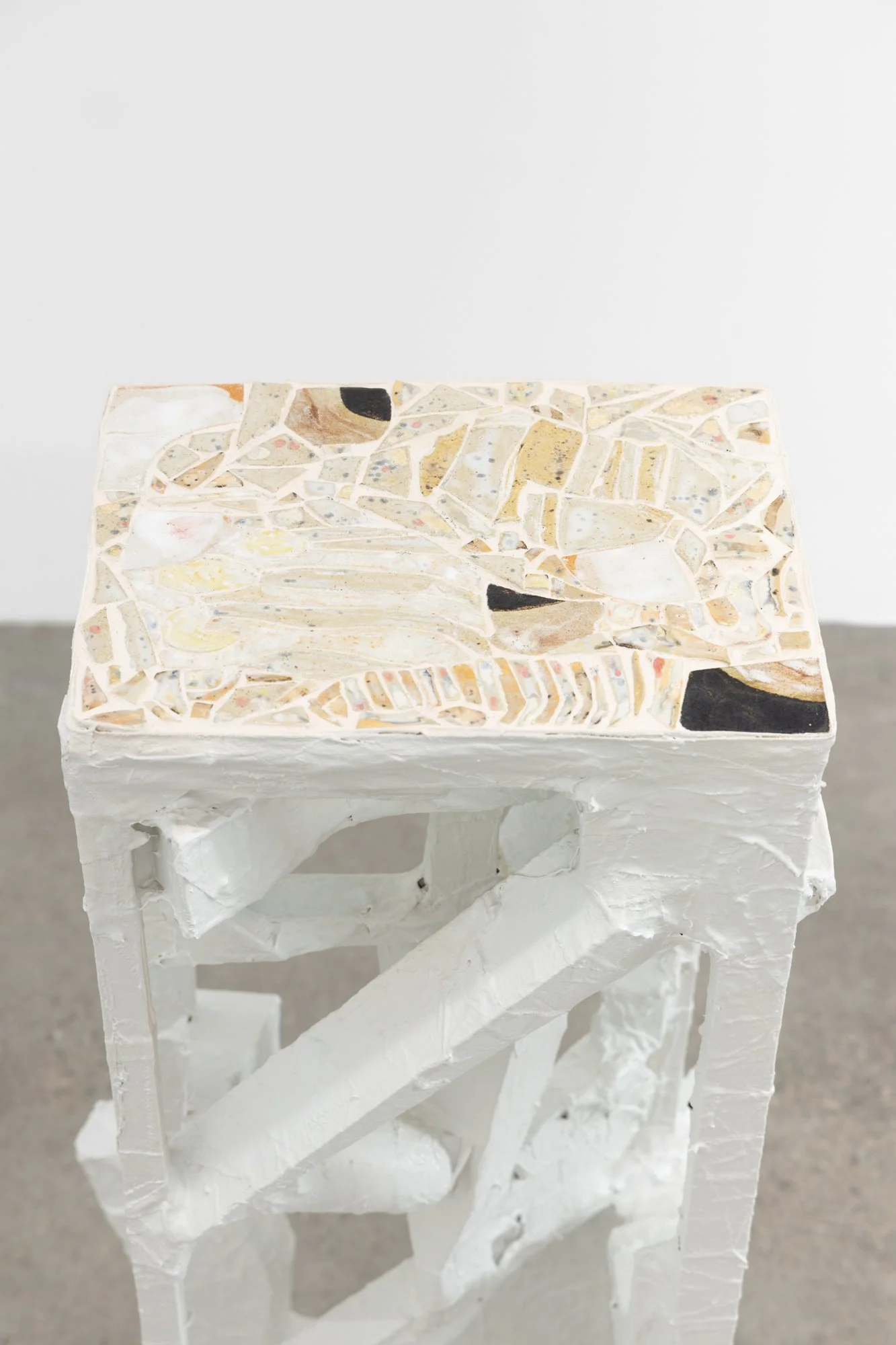 Tucker’s work is structured around fragmentation—not simply as a material condition, but as a way of holding form in suspension. Drawing on anonymous fragments of historical glassware from the V&A Museum collection, the works remain deliberately approximate, detached from fixed contexts or stable meanings. Materials are built up, broken apart, and reassembled so that each element retains a degree of independence. The result is accumulation rather than reconstruction—forms held together without closure.”