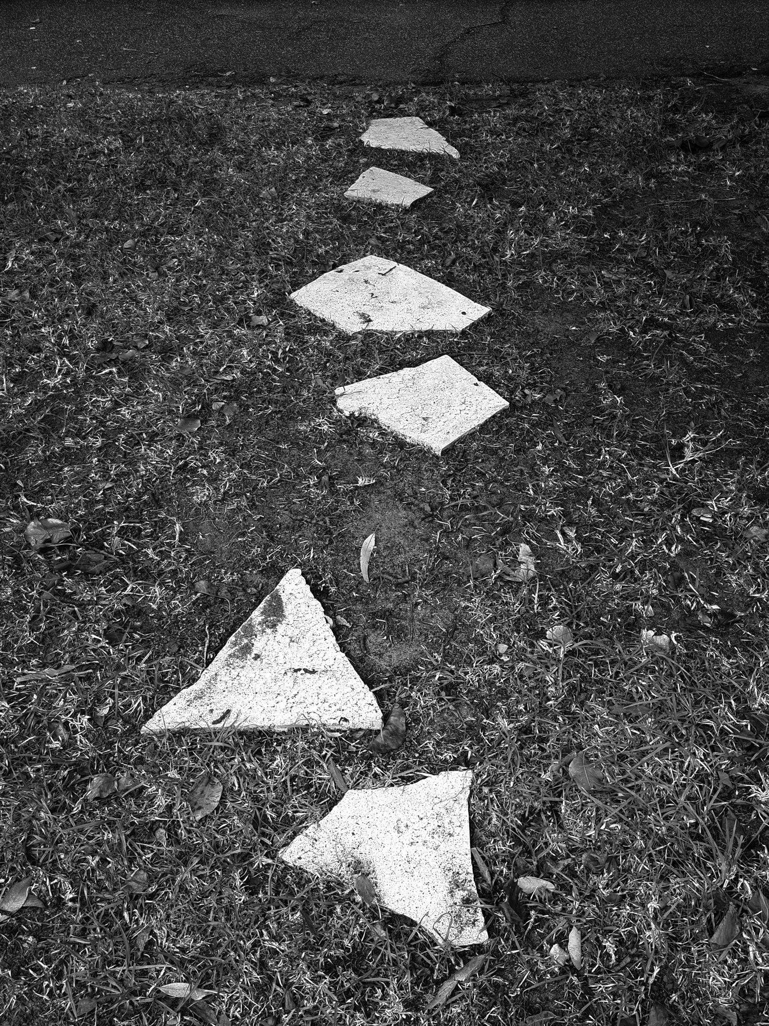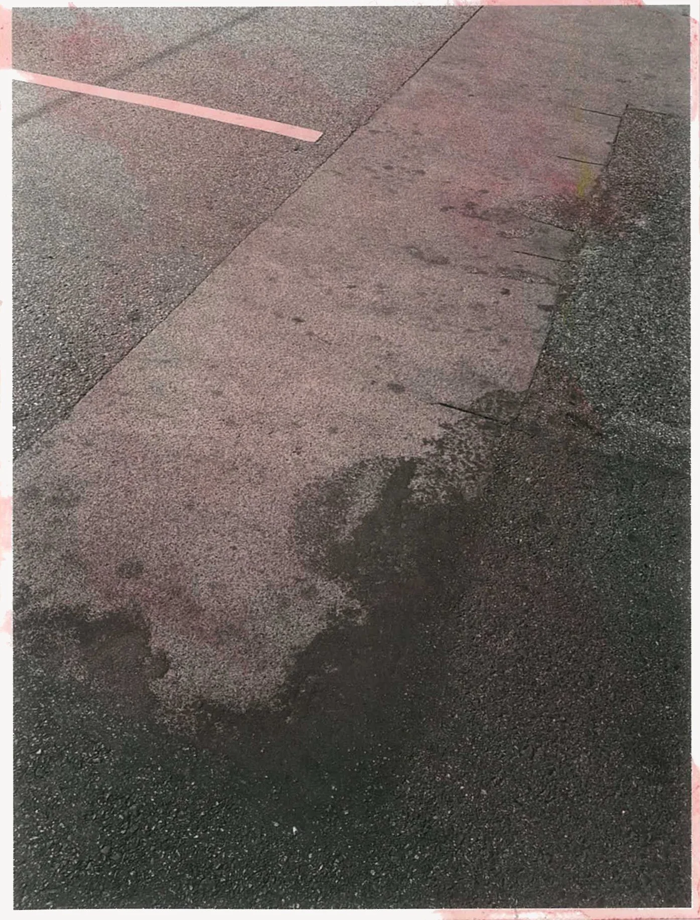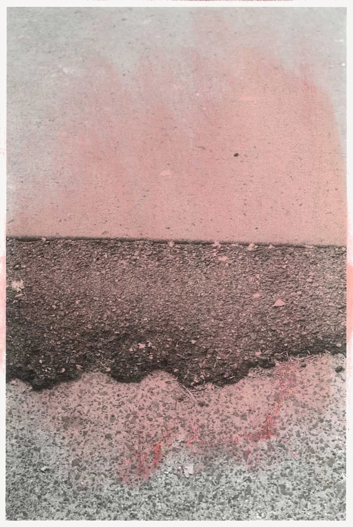 Florence has described this shift as a form of estrangement produced through proximity: when recognition loosens, attention sharpens. What appears, at first glance, as abstraction is not an escape from reality but a reconfiguration of it. The footpath, stripped of its function as ground, becomes a site in which perception is recalibrated.”