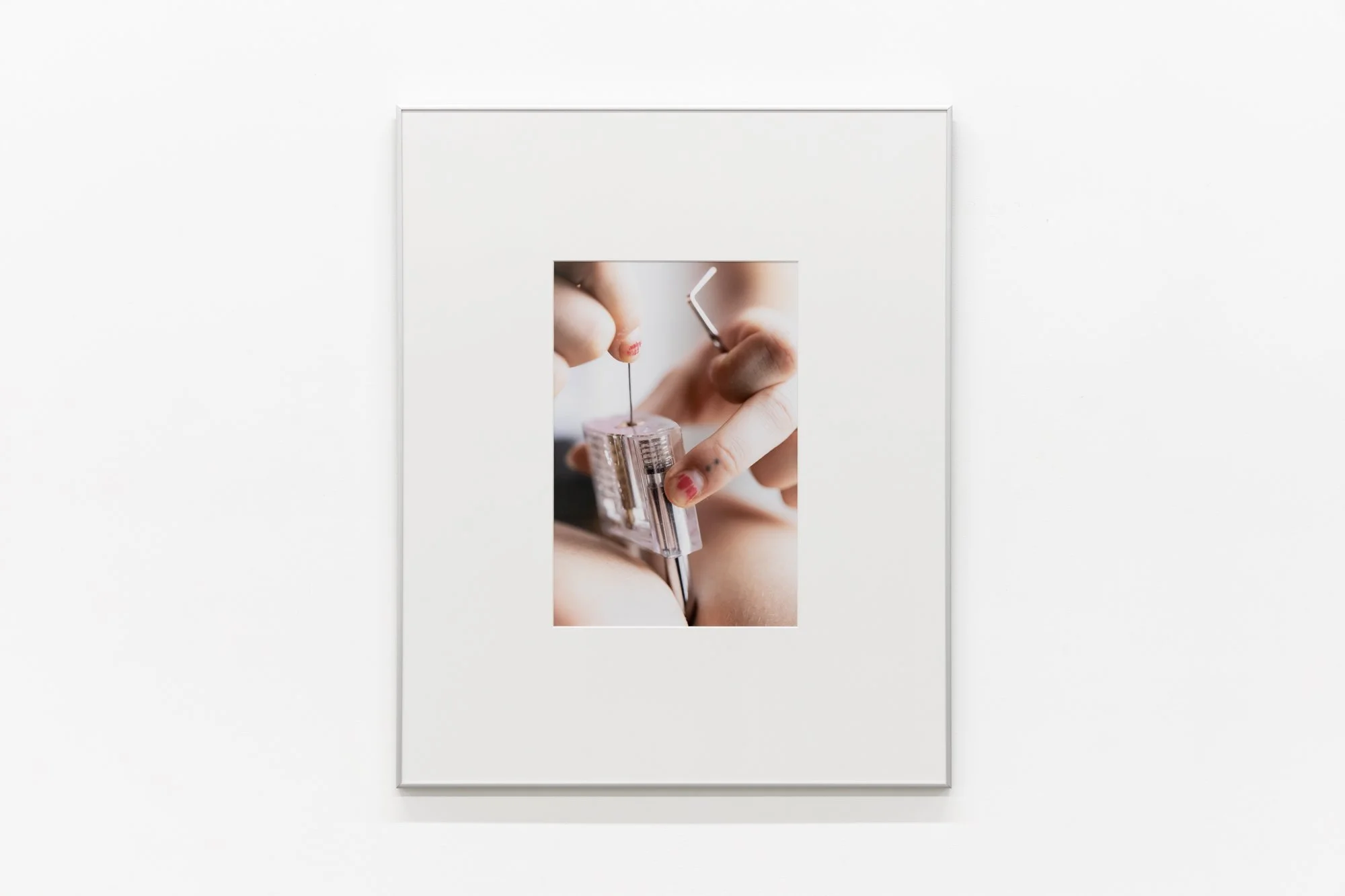 Nicholas Mahady, Lock Picker 01, 2026, archival inkjet print on gloss paper, aluminium framed, 47.5 x 38 cm; 89.1 x 72.2 cm framed