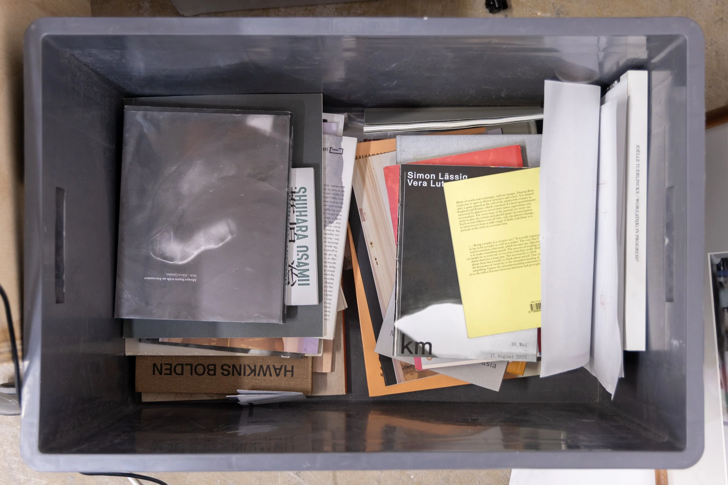 I’m particularly drawn to Eastern European postwar photography. Miroslav Tichý is someone I keep coming back to—there’s something in his embrace of obsession and necessity, and his lack of interest in polish, that I hope to carry into my own work. Artists like Reinhard Mucha and Paul Thek have been important to me for a long time. Lisa Robertson and Bas Jan Ader come to mind when I think of how sincerity and fragility can operate as structural forces within artwork.